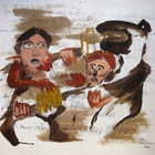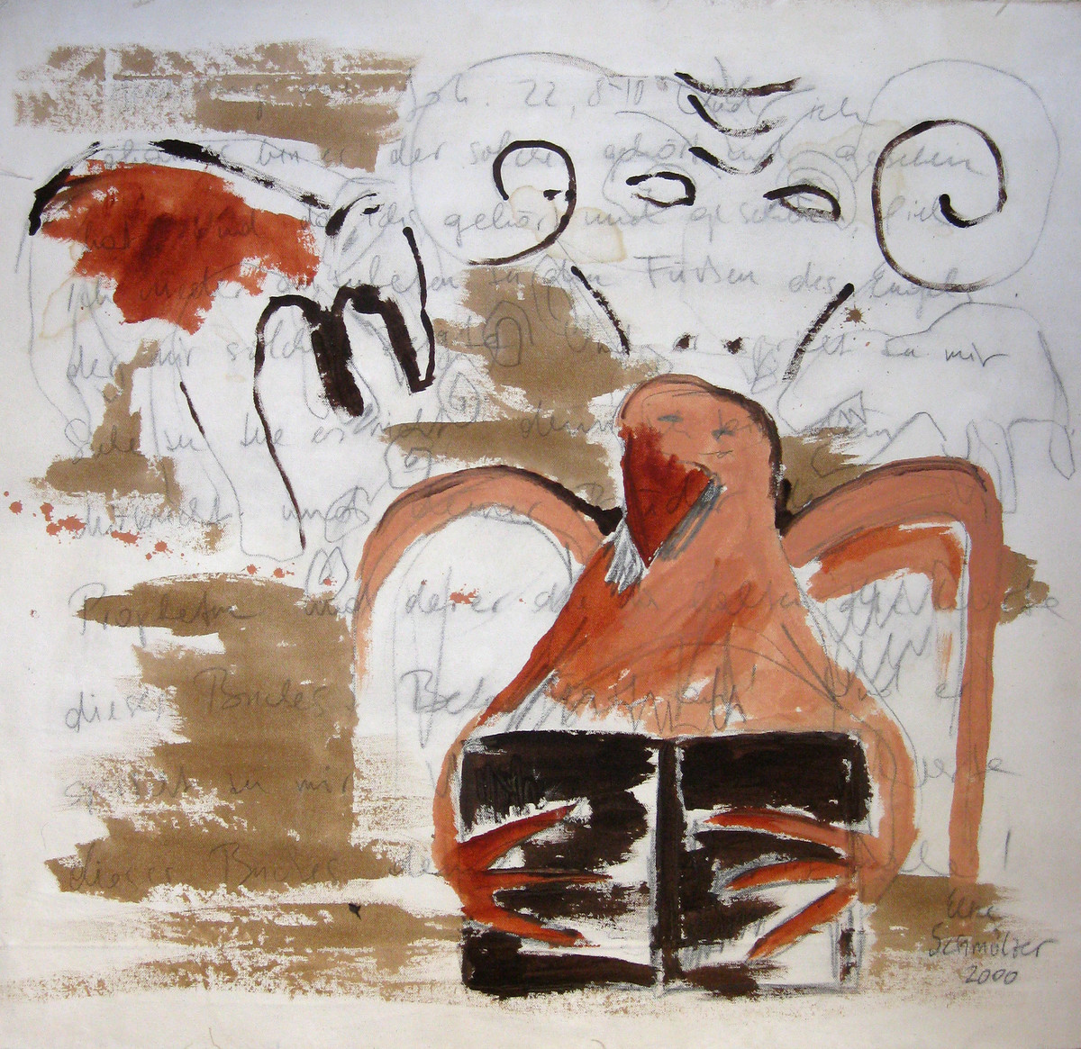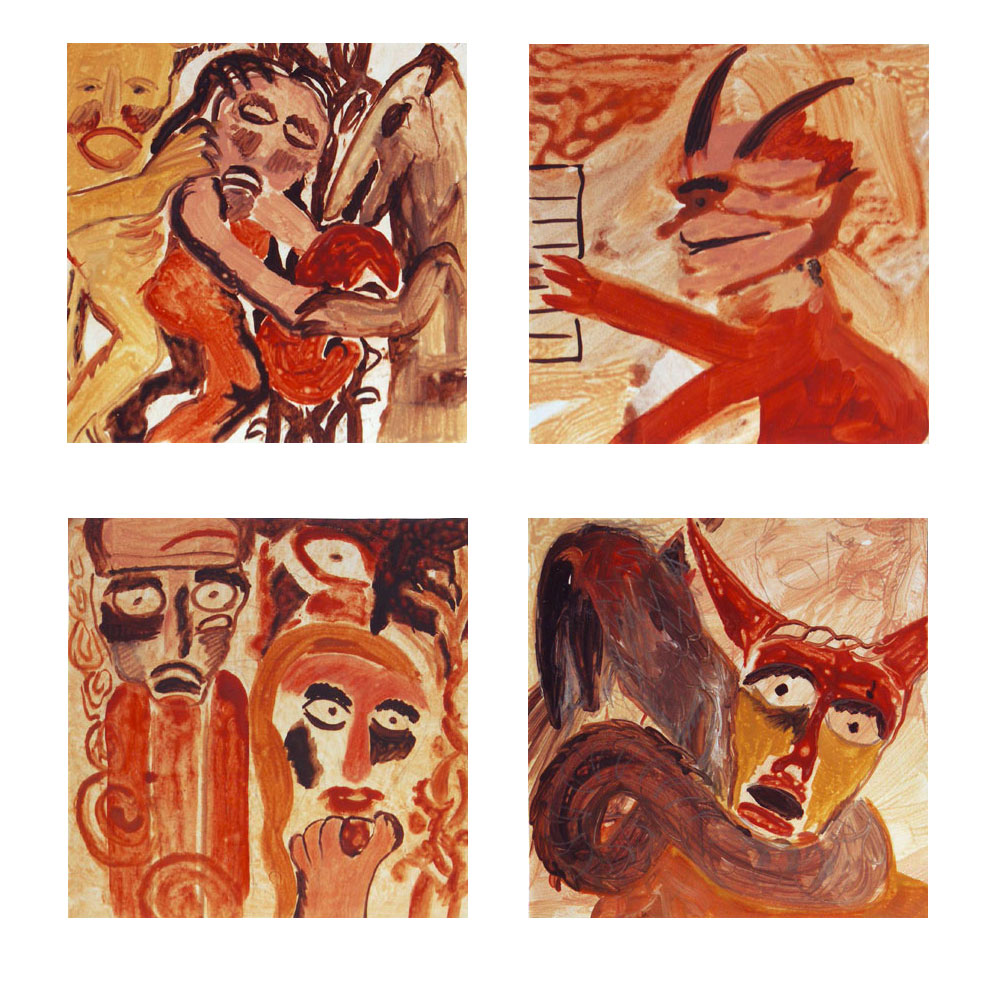 the picture cycle „the stony bible“ was created in the summer of 2000, inspired by the medieval stone figures, known under the same title, at the outer wall of the romanesque church of schöngrabern. The cycle depicts stories from the old and the new testament, such as “the fall of man”, “cain and abel”, “the devil with the list of sins” and so on – topics that are still relevant today – a millennium later – as it is always man who is at the centre, hoping, pressing forward and fighting, torn between good and bad - eternally searching.